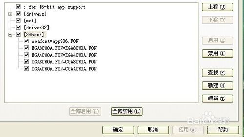 4、重复第一、二两步骤,打开的窗口选择第二个选项卡“System.ini”,在下属的文件列表中双击“386Enh”选项,看下图。