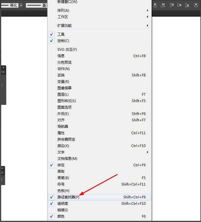 然后选择直线工具,画一条直线,再选中圆角图形和直线到窗口—路径查找器—点击分割,如图所示