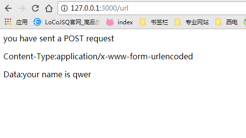 +'<p>Data:your name is '+querystring.parse(reqBody).name+'</p>');