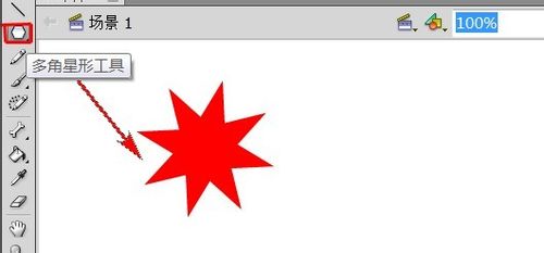 3、在工具栏选择“多角星形工具”,利用“多角星形工具”中“星形样式”在舞台中拖出一个八角星。