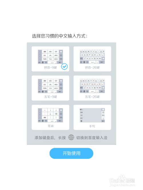 安装好了后,第一次进入百度输入法会你选择“习惯的中文输入方式”,按照自己喜欢的选择即可。