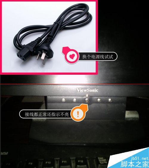 3、如果电源,插座都可以正常使用及接线都OK,可能是显示器电源线坏了,换一条显示器电源线试试
