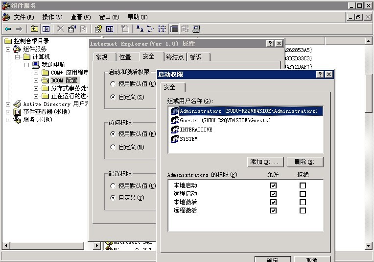 4、安全标签中“启动和激活权限”选择自定义,编辑,添加网站使用的IIS帐号或添加 Guests组 确定即可(如下图)。