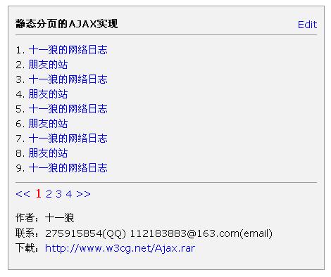 最近因工作需要,要在静态页面上实现分页,想了下,决定用AJAX来实现,所以就捣鼓了下面这么个东西,截图如下: