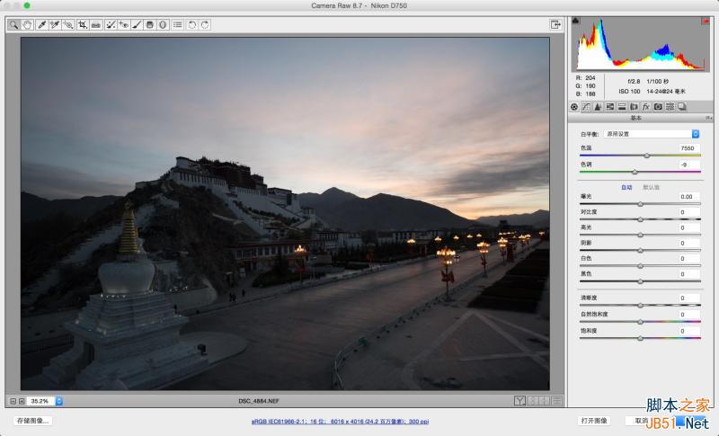 具体操作这里,大家不要记参数,主要看思路。首先我们使用Adobe Camera Raw打开NEF原片。