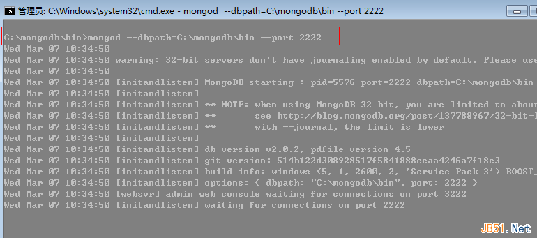 3:启动mongod服务器