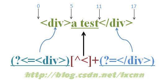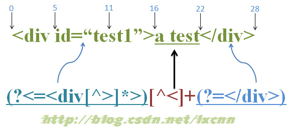 但是如果源字符串变一下,加个属性变成“<div id=”test1”>a test</div>”,那么除非标签中属性内容是固定的,否则就无法在Java中用逆序环视来实现了。