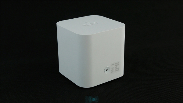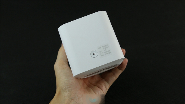 圆形底部微凸,有4只很小的垫脚。铭牌上的二维码用于绑定机器和迅雷账号。