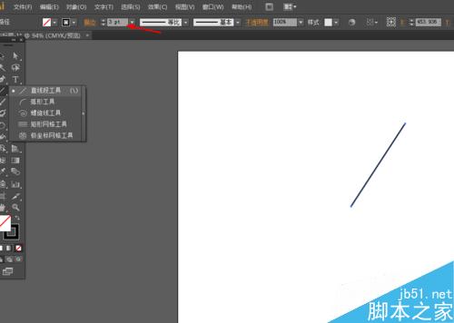 在Ai软件中,新建一个800*800的文档,选择直线工具,画一条直线,描边为3pt,如图所示