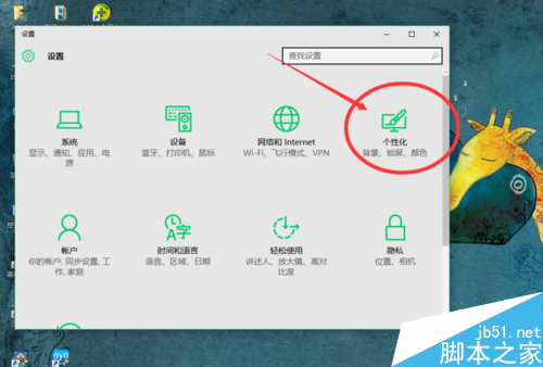 2.从“设置”入口进入后,我们找到“个性化”。对于桌面的壁纸,电脑显示的颜色、以及电脑锁屏等相关设置,都是在“个性化”里面实现的。我们今天要实现的屏保,也是需要进入“个性化”进行设置。