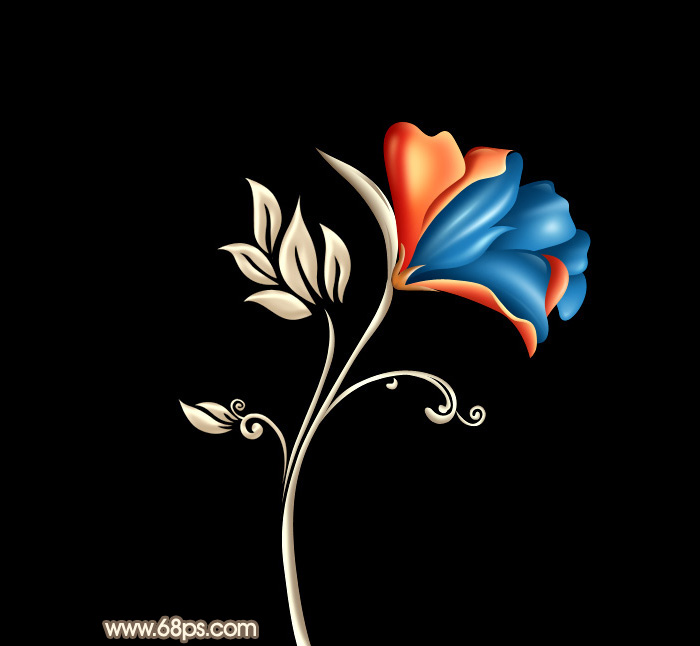1、首先我们来制作花朵部分,由一些蓝色及橙色花瓣构成,需要完成的效果如下图。