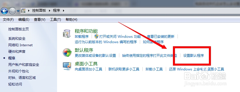 3, 打开程序年后,可以看到有一个【设置默认程序】和咱们需要的功能应该就是它没错了,直接打开,中间会有一个缓冲的时间,这个是在读取所有程序是正常的。