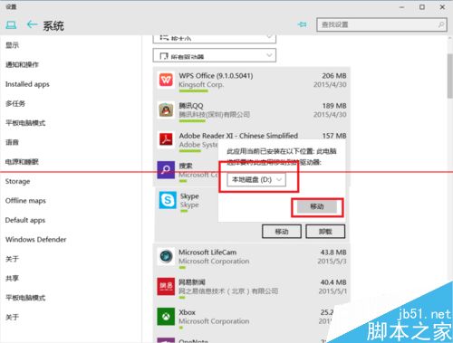 3、选择要移动的应用,点击移动,选择要移动到的盘,再点击移动。