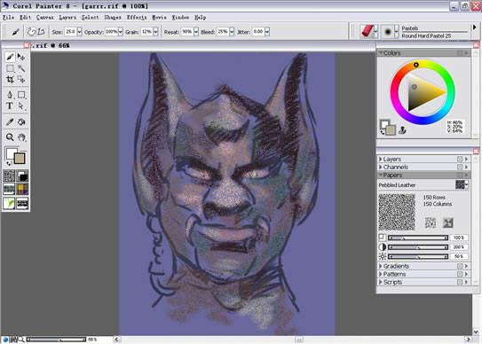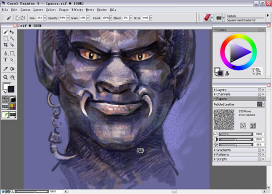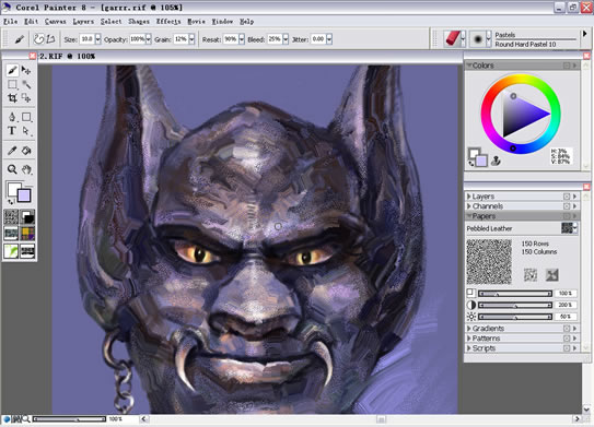 Pastel是Painter的干画笔中质感最丰富的一类笔刷,单用Pastel的画笔就可以创造出多种丰富的效果,如果结合变形扭曲水笔的变体那么更是如虎添翼。今天本教程就为大家介绍Painter Pastel(干画笔)绘制卡通牛魔王的方法,希望大家喜欢。 最后完成图: