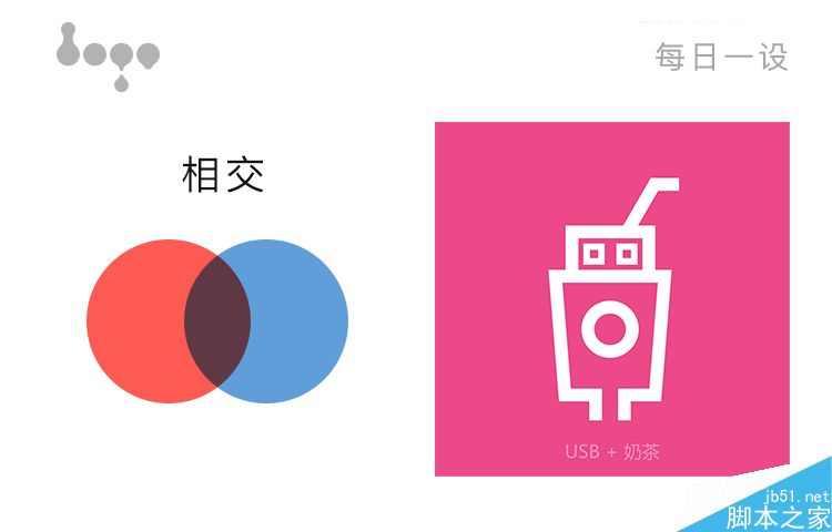 两个元素相互重合,我中有你,你中有我。例:USB+奶茶,整个USB团通过接口与奶茶的习惯结合,下半部分奶茶的标签与USB线又相互结合,产生了一个新的图案,两个元素大面积的叠加。