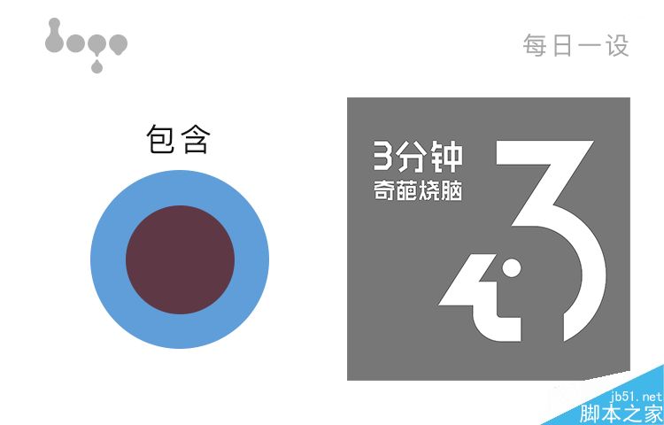 例子:3+烧脑,这是我给自己之前节目设计的LOGO,将大脑这个元素融入“3”这个图形中来,“3”的造型负型做成一个脑袋的样子,外加了一点点闪电的元素,凸显快的感觉,最后在给脑袋点一个眼睛,这个LOGO就设计完成了。