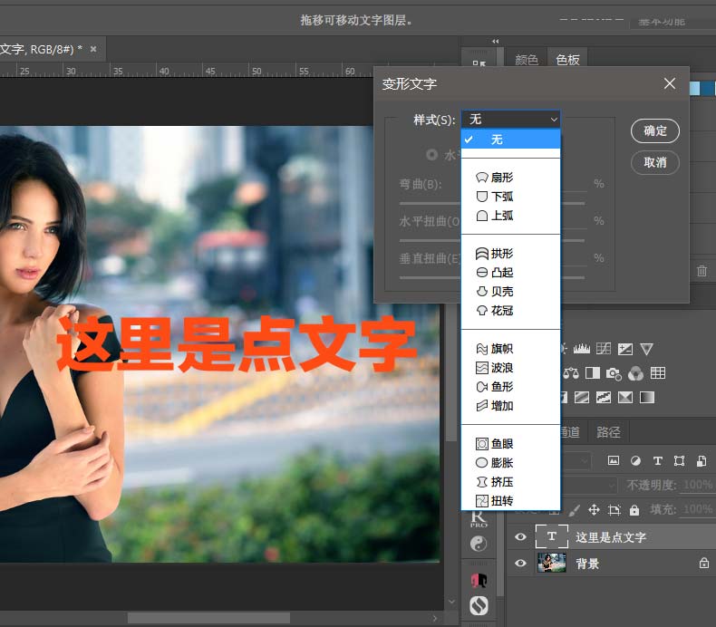 “文字变形”和“转换为形状”都在菜单栏的“文字菜单里,都是选中文字图层的情况下,直接通过菜单选择单击后即可,文字变形就都是预设好的一些怪异形状来改变文字外形,并提供了二次修饰,很自由的参数设置,也在一定程度上能满足我们字体设计的需要,而且很方便,如图示例: