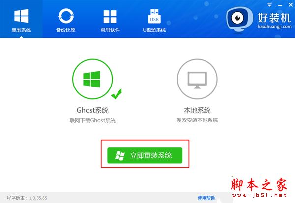 3、在“重装系统”页面,选择【Ghost系统】,点击【立即重装系统】,如果本地有系统iso镜像,选择【本地系统】;