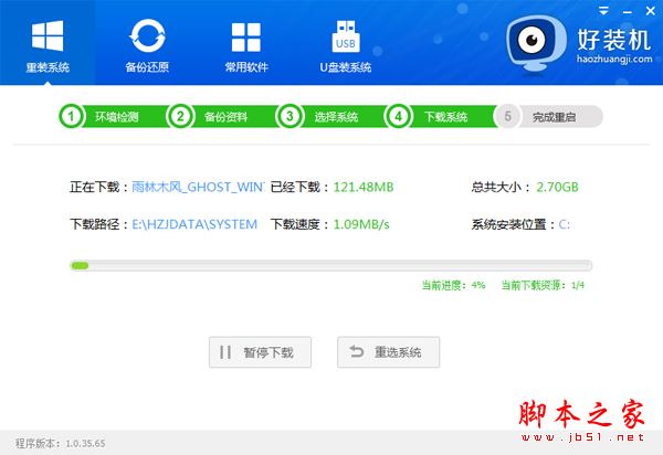 8、在这个界面中执行下载win7系统镜像的过程,下载时间根据网速的快慢而有所不同;