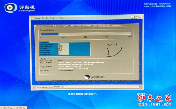 12、启动进入好装机界面,开始自动做系统,这个阶段等待5分钟左右;