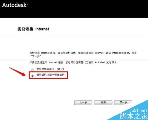 3、选择使用脱机方法申请激活码,点击下一步。