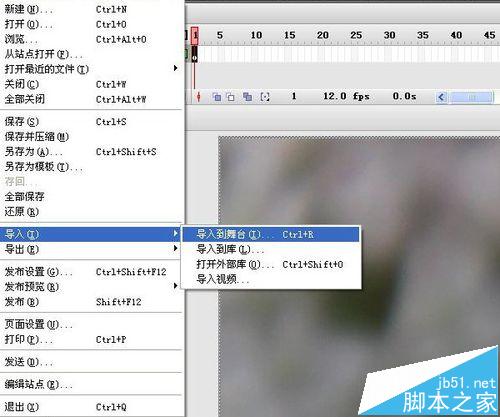 1、导入方法:文件——导入——导入到舞台。当然也可以导入到库,因为下一步对图片编辑,所以直接导入到舞台。不论导入到哪里,都可以在库中找到。