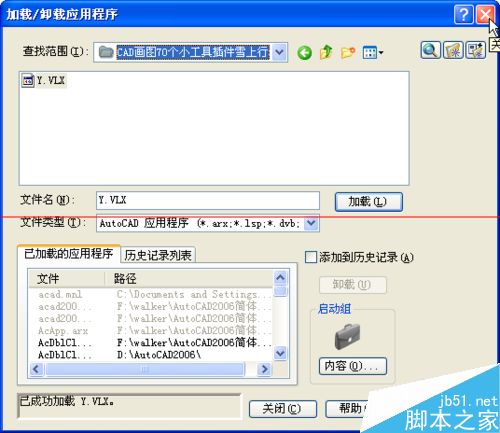 3、然后选择VLX格式的工具插件路径(建议放置到CAD安装目录下方),并点击加载。