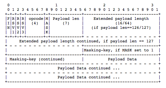 当 Mask 为 1,则携带了 4 字节的 Masking-key;