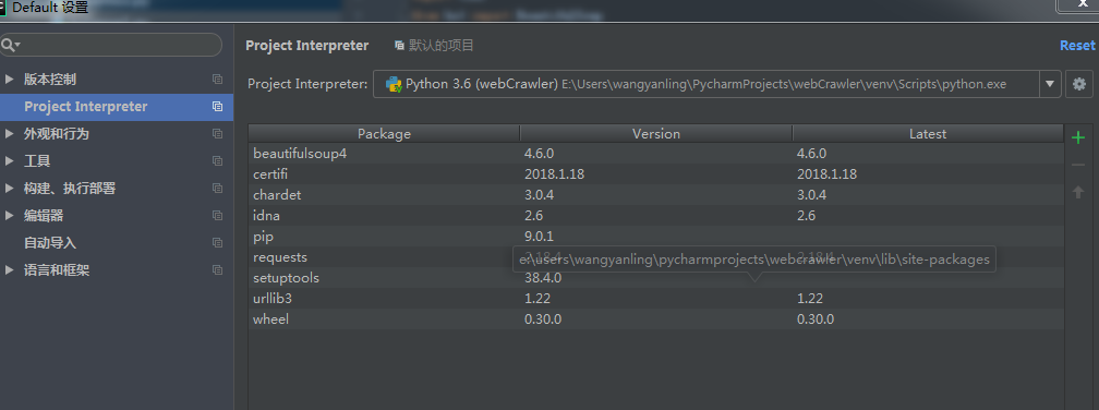 如上图打开默认设置选择Project Interprecter,双击pip或者点击加号,搜索要安装的第三方库。其中如果建立的项目多记得Project Interprecter要选择正确的安装位置不然无法导入。