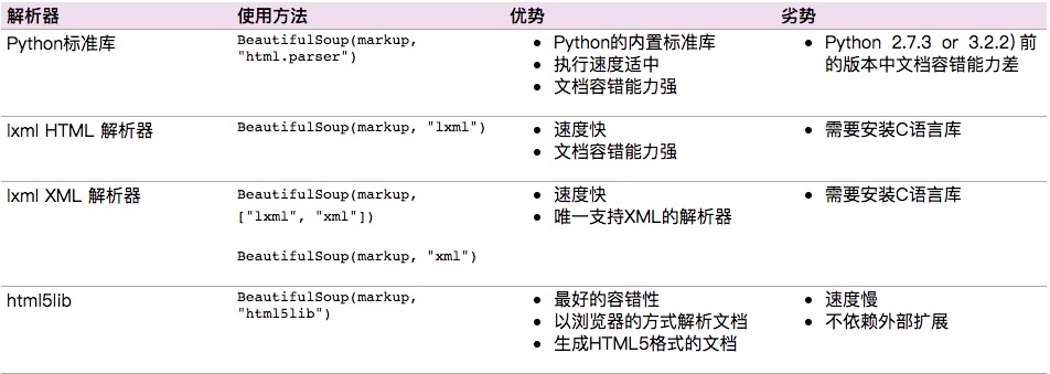 Beautiful Soup支持Python标准库中的HTML解析器,还支持一些第三方的解析器,如果我们不安装它,则 Python 会使用 Python默认的解析器,其中lxml 据说是相对而言比较强大的我下面的暗示是python 标准库的。