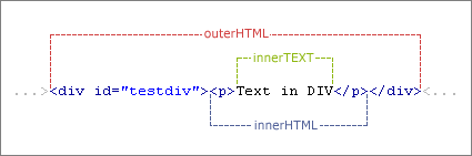 1) innerHTML、outerHTML在设置标签之间的内容时,包含的HTML会被解析;而innerText、outerText则不会;