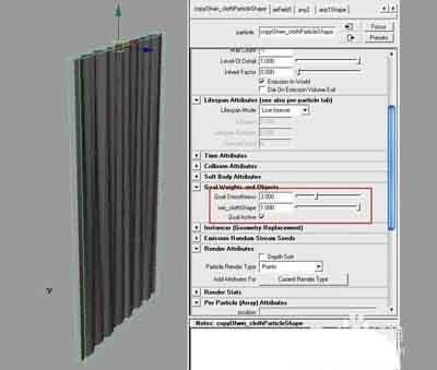 8、为了再多一些细微的变化效果,我们再给soft body加一个Turbulence场,使用默认的就够了,或者可以自己设置一下。真正的窗帘顶端应该是不动的,所以现在还要再改一下soft body的设置,如图:飘动的窗帘就完成了