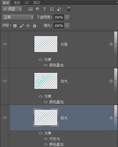 13、现在发光部分已经做好了,看下效果如何(记得新建多个组把发光部分的归纳进去,良好习惯可以让我们很容易找到每个图层)。