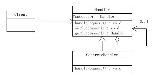 ● 具体处理者(ConcreteHandler)角色:具体处理者接到请求后,可以选择将请求处理掉,或者将请求传给下家。由于具体处理者持有对下家的引用,因此,如果需要,具体处理者可以访问下家。