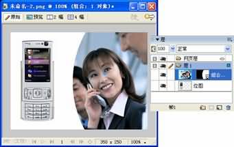 在Fireworks CS3中创建蒙版之后,【图】面板中的图层会变成两个缩略图,左侧的缩略图为被蒙对象,右侧的缩略图为蒙版,如图5-65所示。