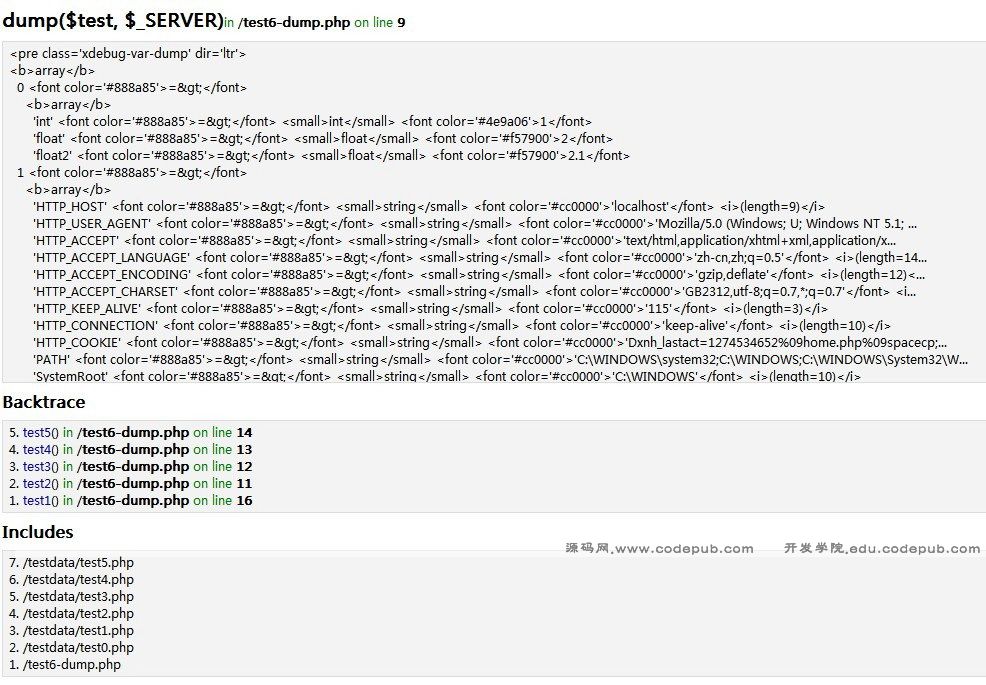 注:本人在运行dump()或者dump_tofile()时发现并不能出现PHP DEBUG TOOL文档中所述