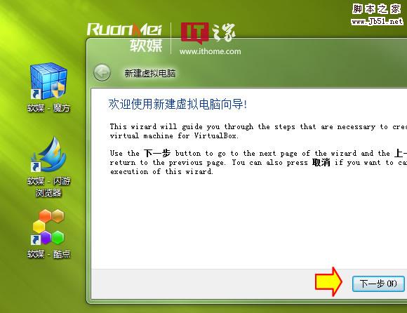2、在打开的 Oracle VM VirtualBox Manager 里面,点击左面第一个按钮“新建”,出来新建虚拟电脑向导,点击“下一步”——
