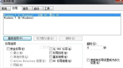 点击开始 - 在"搜索程序和文件"的框框中输入“msconfig”,回车就会弹出系统配置菜单。换到“引导”项,然后把超时那一栏的时间改成5,这个是小编改的,你可以改成其他的,越小越快。但是不建议改为0.如图: