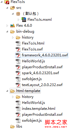 将此js文件放在FlexToJs/html-template下,这是运行时代码的存放地址,如果需要调试,那么需要在FlexToJs/bin-debug下面也放一份,如图: