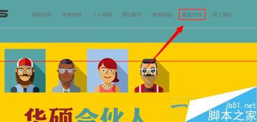 二、进入华硕官网之后,选择->服务支持。