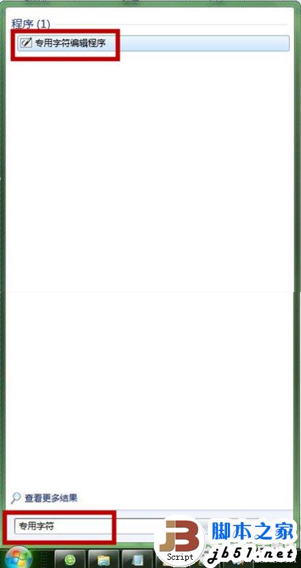 第一步、 点击开始按钮,在搜索程序栏里面输入“专用字符编辑程序”,并按下“回车键”即可打开“专用字符编辑程序”。