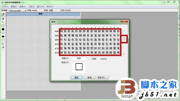 第四步、“参照”的功能,可以选取汉字的结构,往下拉会有无数个文字和符合给你选择。在此,小编建议你造的字先想好是什么结构,也选择“参照”中的相似结构,并且最好中间有空隙。