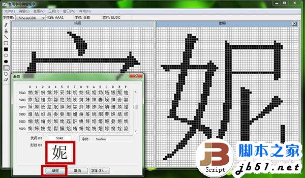 第二步、 在“专用字符编辑程序”窗口中,选择AAA1代码,通常情况下为默认,点击“确定”。