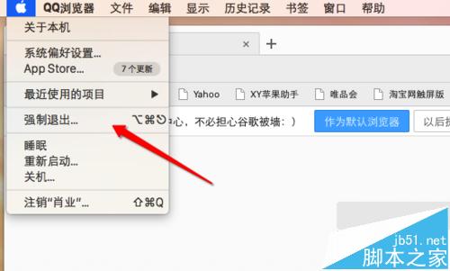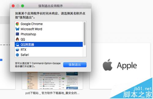 这个有些类似第二条,从左上角的苹果菜单中选择“强制退出”,不过有些时候程序当机,点击菜单会出现没反应的情况。