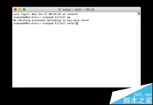 这个应该算是重启电脑之前的最后办法了,在终端中输入如下命令:killall [程序名称]。比如说强制退出Safari,就输入 killall Safari 再回车即可,这样有关Safari的全部进程就都退出了。