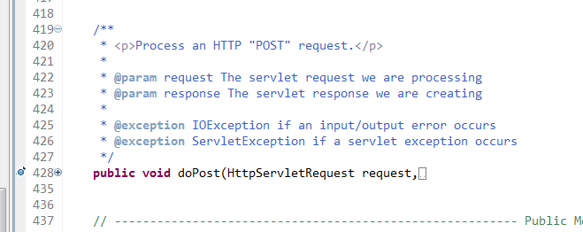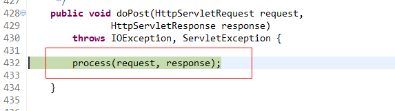 先我们来对ActionServlet深层次进行分析。我们用断点的调试的方式来看底层源码。因为这个实例是post方式提交,所以将断点设置到doPost方法上。