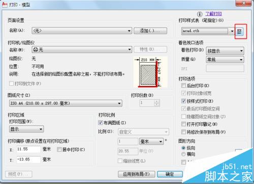 很的人在CAD设计完成后,在打印输出时出现颜色和线宽设置不对,现将打印设置的相关选项进行设置