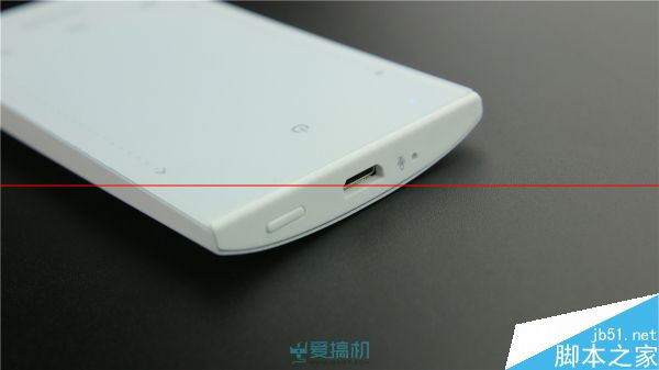 触控板两侧是音量和页面滚动区,底部是安卓三大金刚键,顶部是电源开关、Micro-USB充电接口和麦克风。