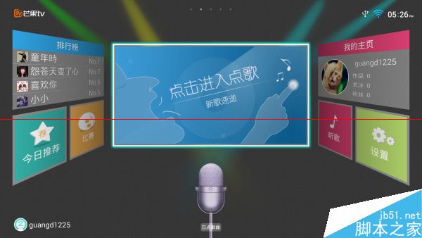 K歌页面把K房的点歌机整个搬到了电视盒里面,除了常规的关键字、地区、语言等搜歌方式外,还有线上K歌比赛、排行等互动方式。