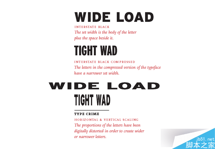 8. 避免常见的「排版病」设计程序当着我们完成很多了不起的事,但若不够小心,有时候也让人容易犯下一些显而易见的错误。〈Thinking with Type〉 的作者 Ellen Lupton 在书的官方网站上,举了几个坏习惯作为例子: 不要为了填满版面任意拉长文字,若你只拉长一个方向,会让文字及间距严重变形,如果要重设大小,请固定长宽比例。